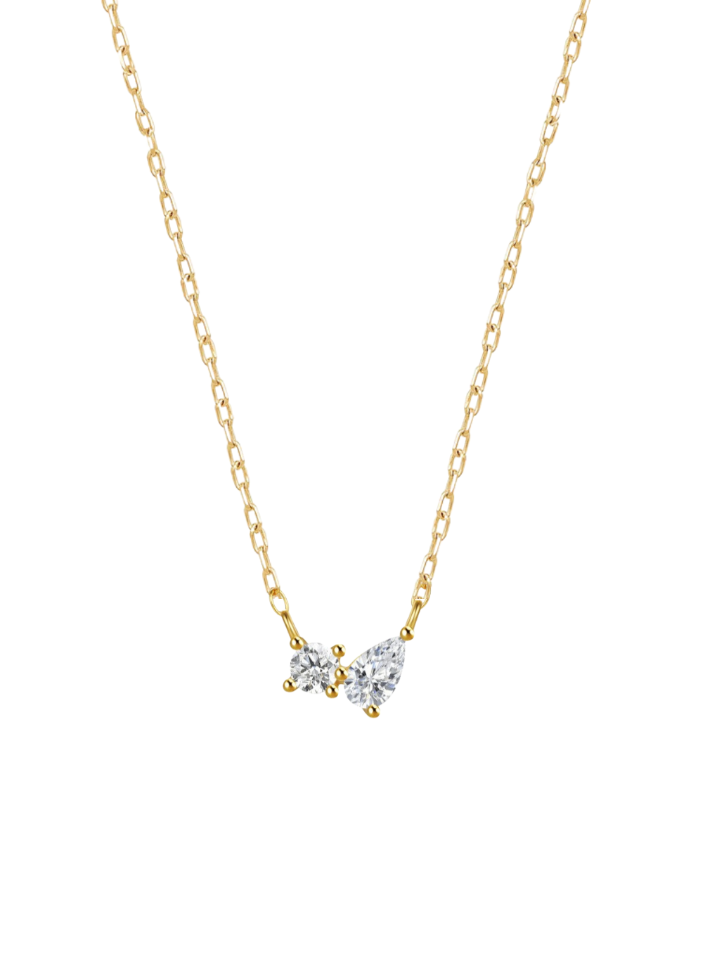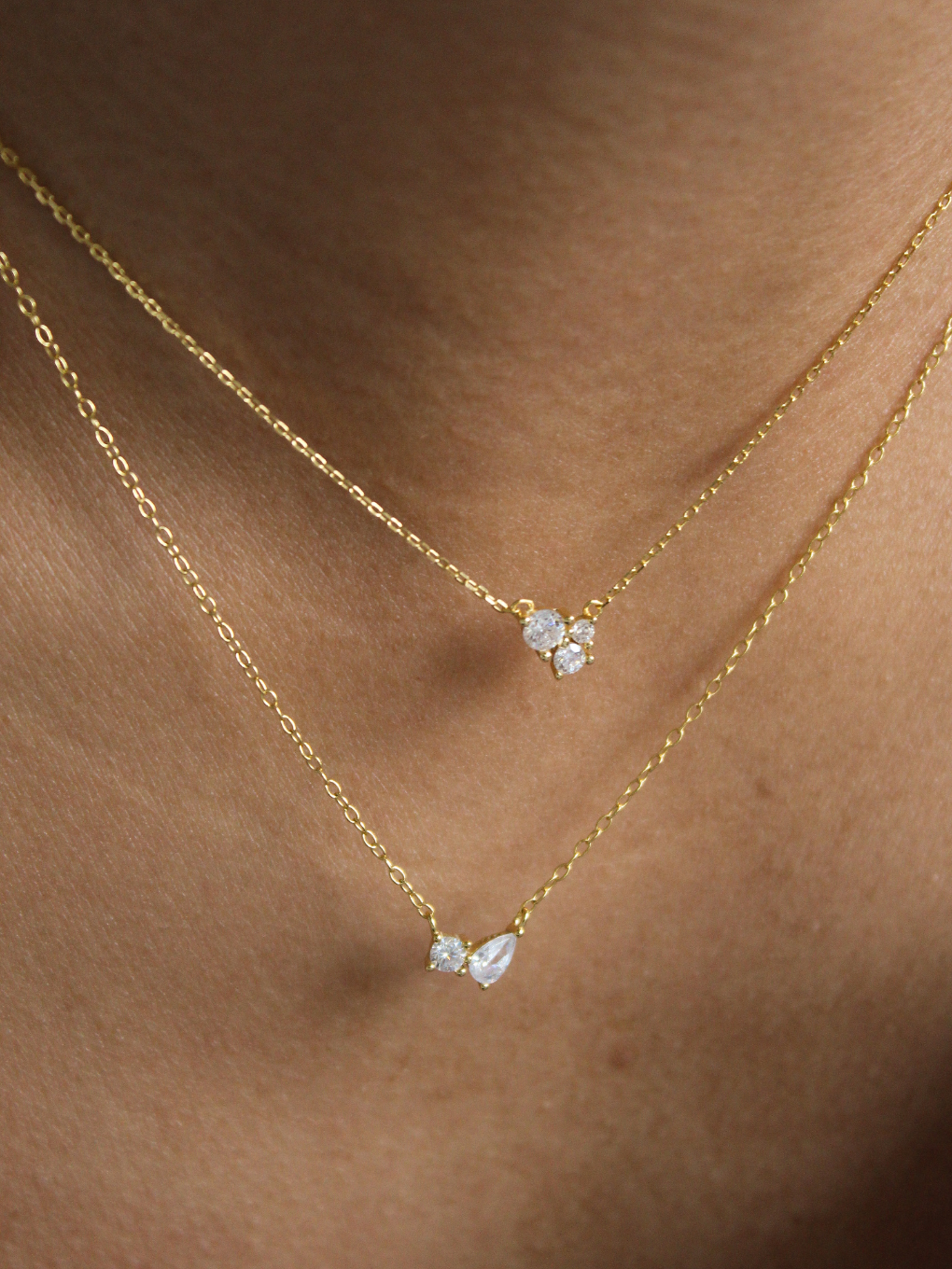 The Odette Necklace features two delicately set stones that catch the light with subtle sparkle, adding a refined touch to any outfit.